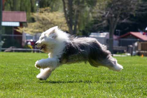 old english sheepdog running